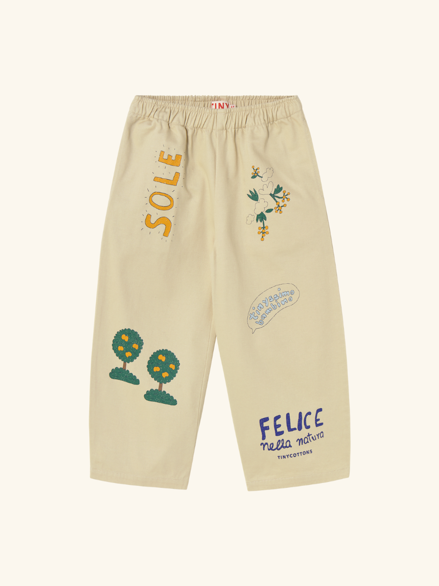 Vanilla straight-leg pants with nature-inspired graphics, by Spanish kids brand Tiny Cottons.