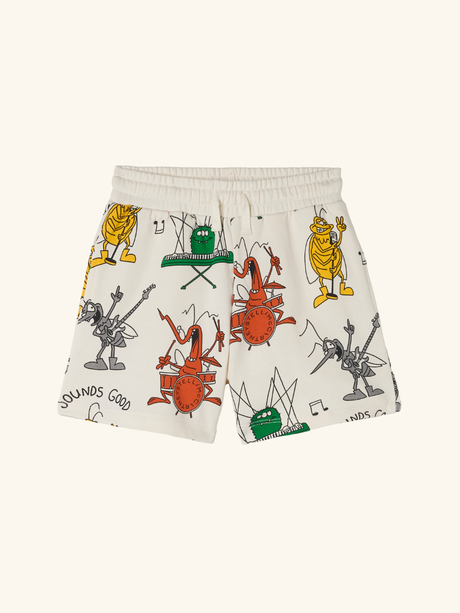 Fleece shorts with all-over Bugs Band print, by British brand Stella McCartney Kids.