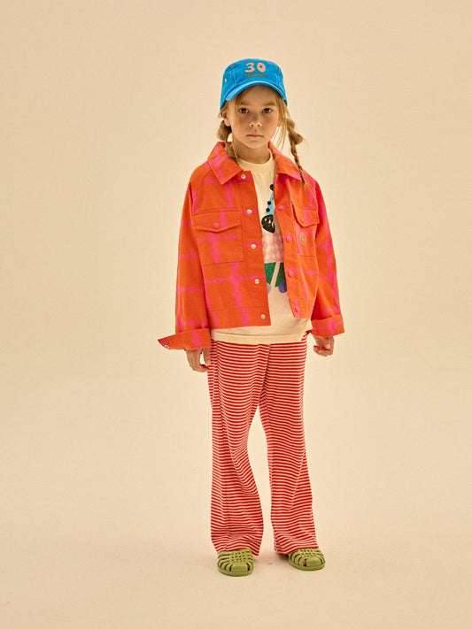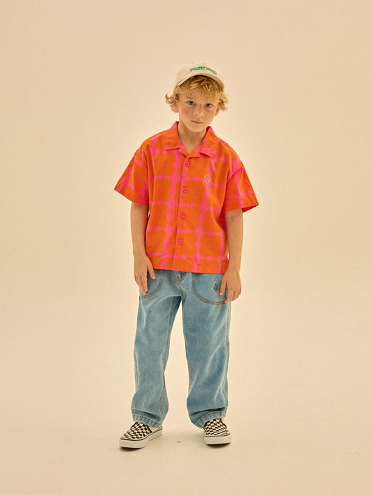 Pink cotton dress with an all-over red clover print, by Korean kids brand Jelly Mallow.