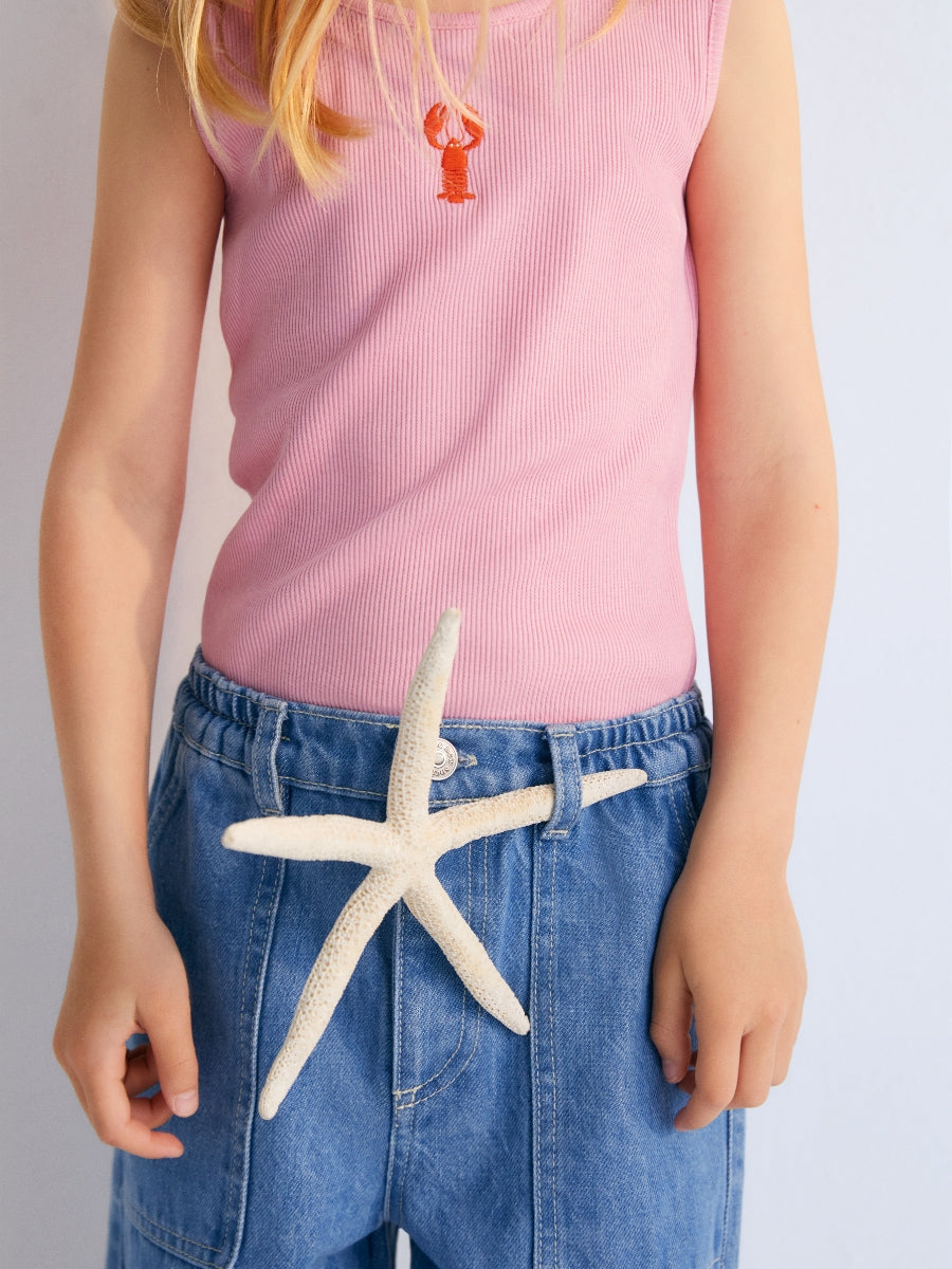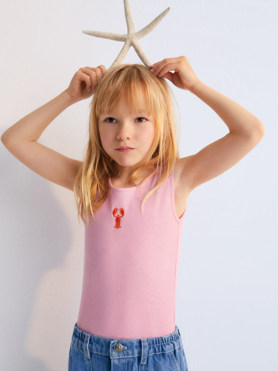 Pink ribbed cotton top with a slim fit, by Spanish kids brand The New Society.