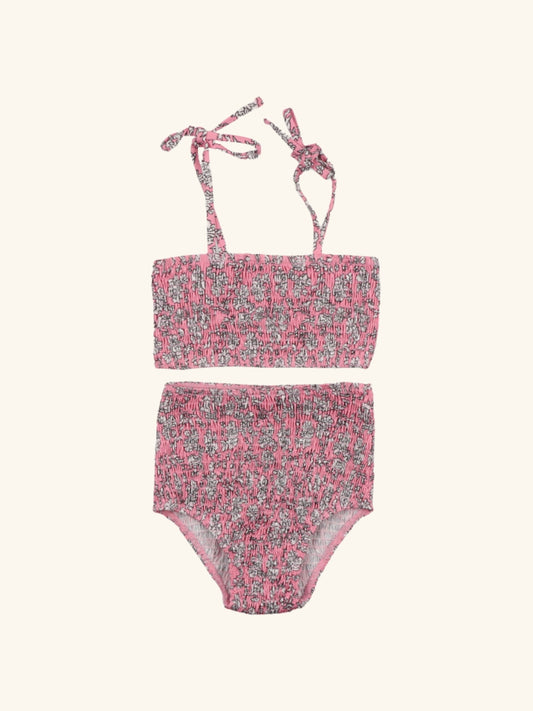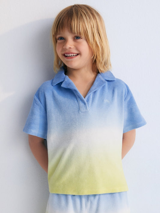 Green micro-corduroy vest in a patchwork print, by Spanish kids brand The New Society.