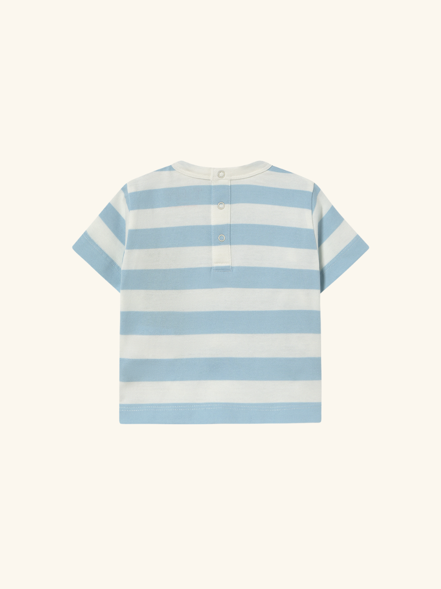 Dusty blue and off-white striped tee by Spanish kids brand Tiny Cottons.